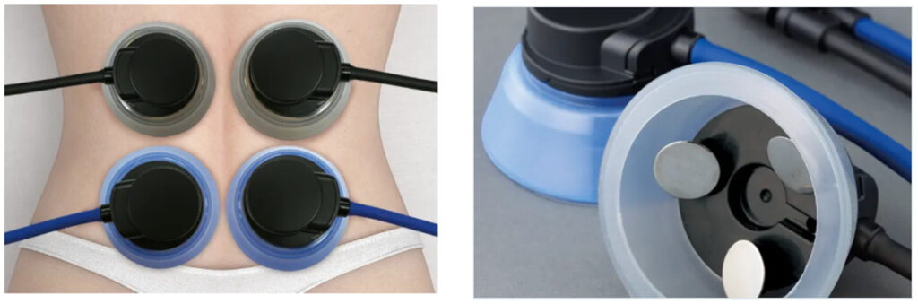 患部の皮膚を吸引して持ち上げながら、立体的に電流を流すことで、筋膜・皮下組織・深部筋を多層的にアプローチできます。