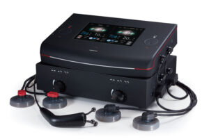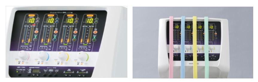 | 概要 | 4台の低騒音ポンプを装備し、各チャンネル独立制御で最大4人同時に干渉電流型低周波治療を行える治療器 |