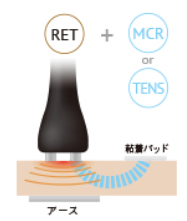 フィジオラジオスティム MH2は、ラジオ波による深部温熱と電気刺激を同時に出力できるコンビネーション治療機能を搭載しています。