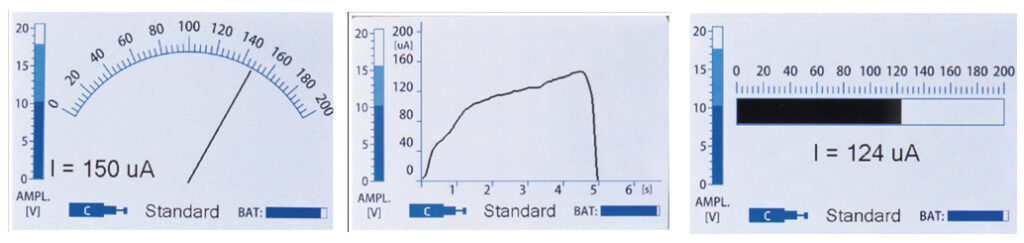 100〜200µAの微弱電流を中周波(2000〜4000Hz)で深層筋や神経にソフト刺激を届ける
