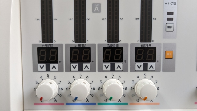 低周波治療器は、おおよそ一秒間に数回から数百回程度のゆっくりとした電気刺激を身体に与える機器です。周波数が低いため、皮膚の抵抗を受けやすく、主に表層の神経や筋肉に作用します。患者さんが感じるのは、ピリピリとした感覚や、わずかな筋収縮です。痛みの信号が脳に届く前の段階でブロックしたり、神経の興奮を落ち着かせたりすることで、痛みの軽減が期待できます。肩こりや慢性的な腰痛、しびれ感を訴える方に用いられることが多く、症状に応じて強さやリズムを細かく調整できる点も特徴です。ただし、刺激が強すぎると不快感や筋肉のこわばりにつながるため、患者さんと感覚を確認しながら設定していくことが重要になります。